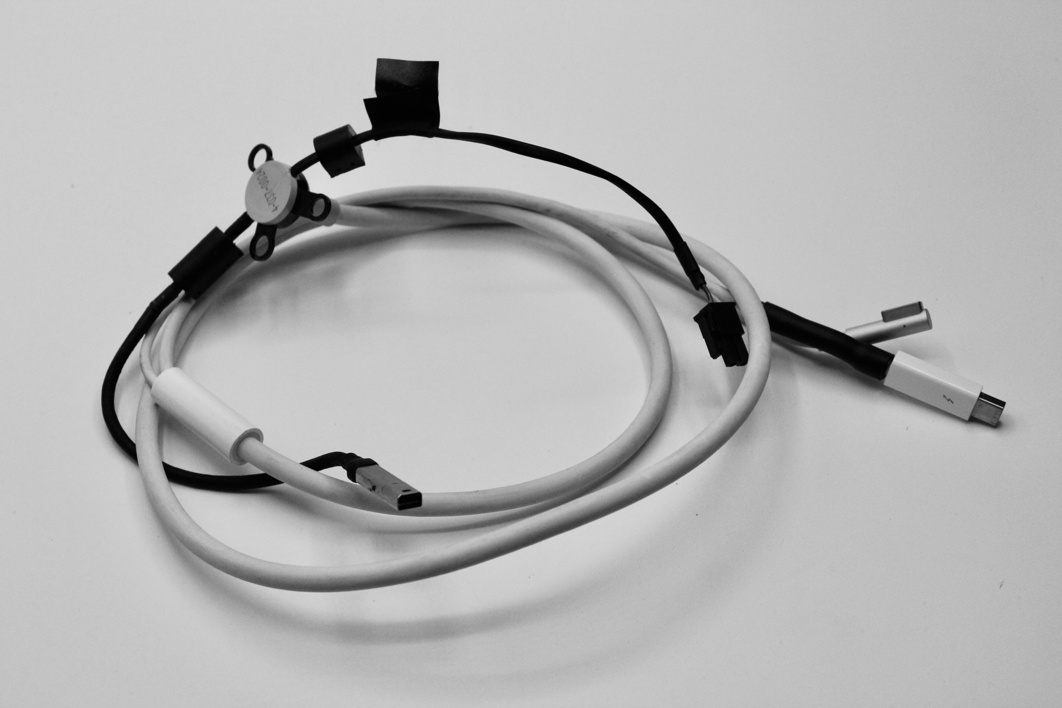 Das Anschlusskabel beinhaltet den Magsafeanschluss und den Thunderboltanschluss