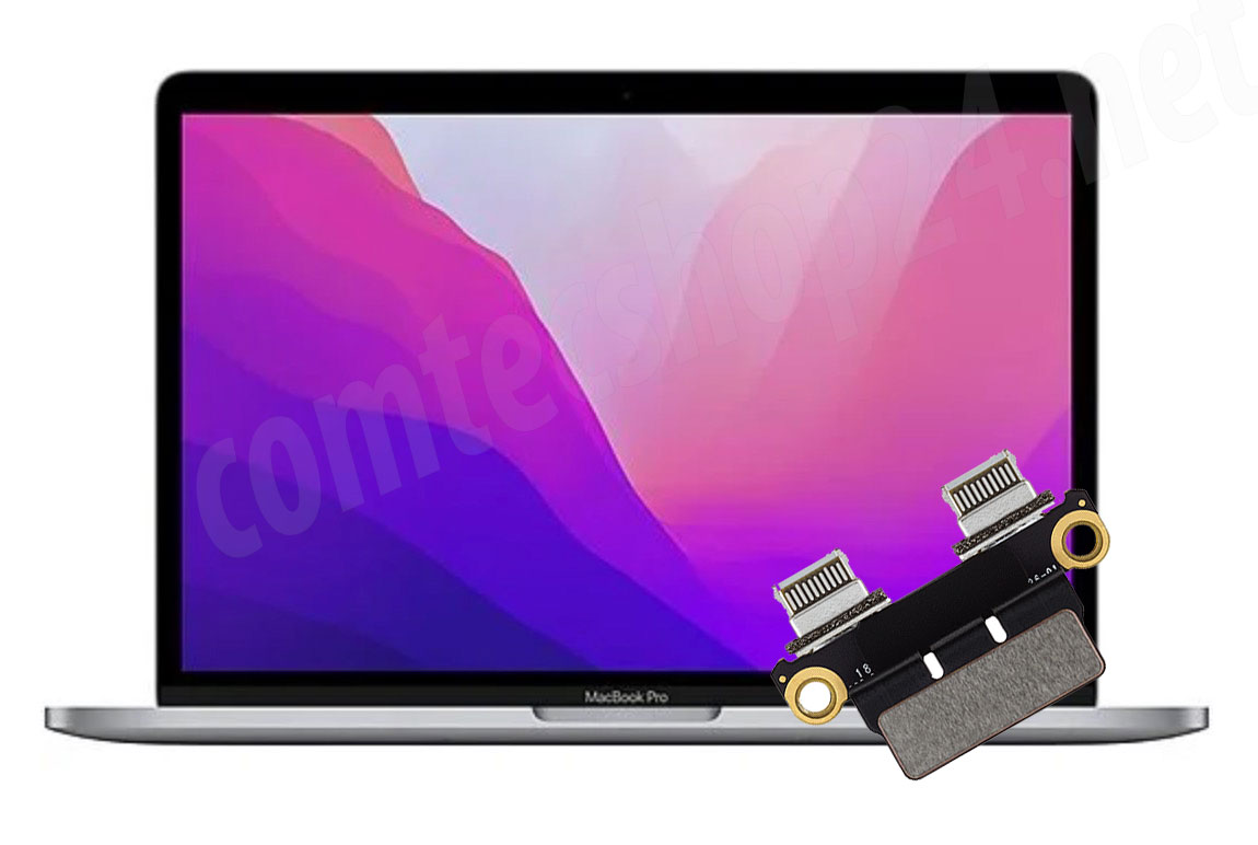 Sollten bei Ihrem MacBook Pro (13-inch, M2, 2022) A2338 EMC 8162 Probleme mit den USB-C / Thunderbolt Anschlüssen auftreten dann tauschen wir die komplette Eingabe/Ausgabe-Platine.
