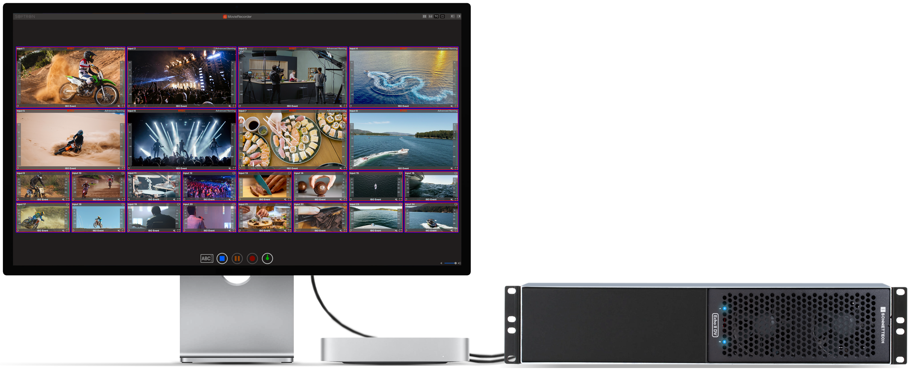 Sie können jede Seite des Echo II DV an einen separaten Computer anschließen. Jede Seite arbeitet unabhängig von der anderen. Es ist, als hätten Sie zwei Single-Slot-Systeme in einem und sparen so Platz im Rack oder auf dem Schreibtisch.