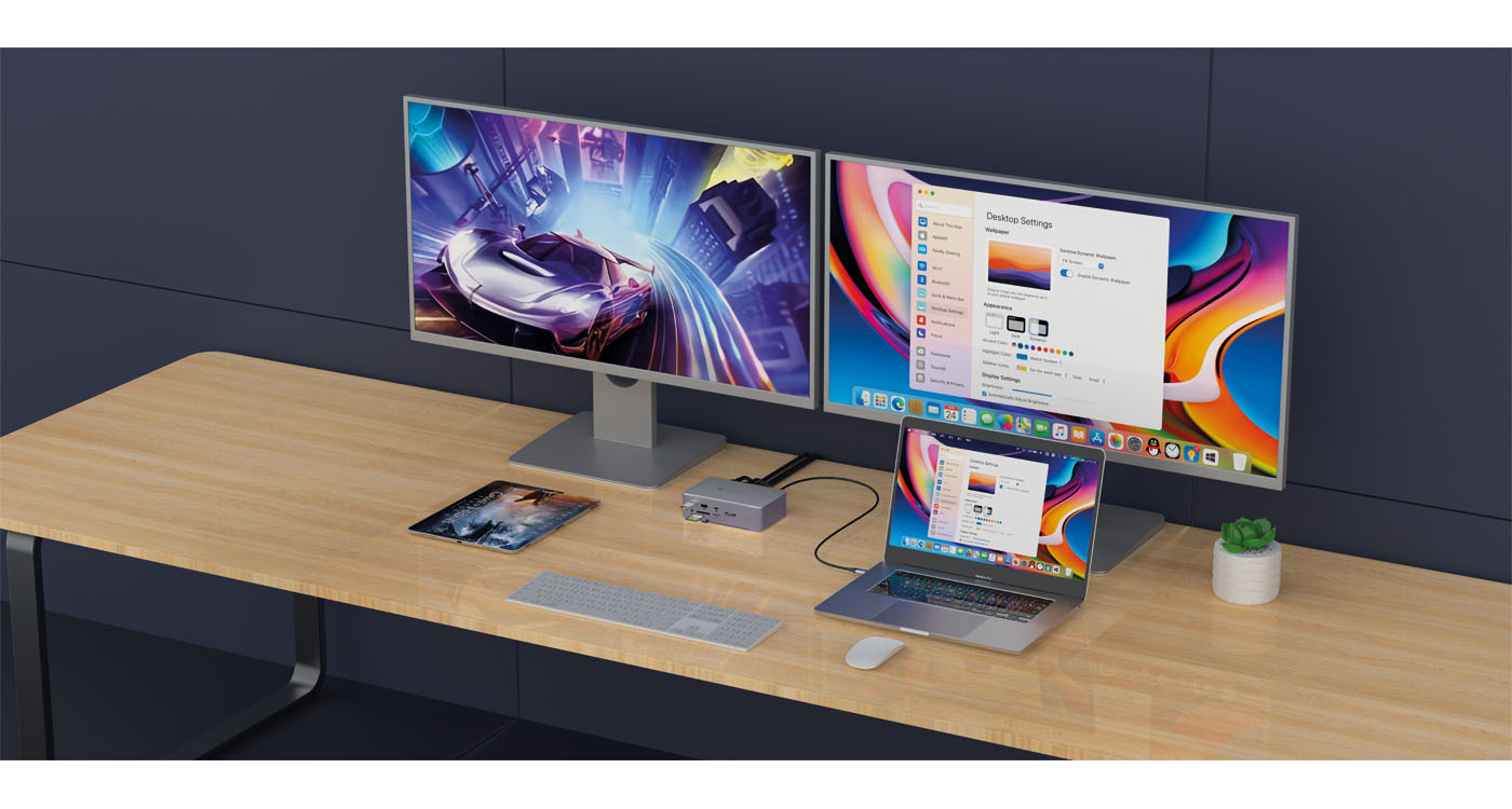 Ein 2.5 Gbit/s Ethernet Port (RJ45) bietet schnellen kabelgebundenen Netzwerkzugang und unterstützt Funktionen wie Auto-Negotiation und Wake On LAN. Die Dockingstation verfügt ausserdem über zwei SD/TF 4.0 Kartenleser und eine 3.5 mm Kombo Audiobuchse für Ein- und Ausgang. Ein Kensington Security Slot ermöglicht es, das Gehäuse gegen Entnahme zu sichern.